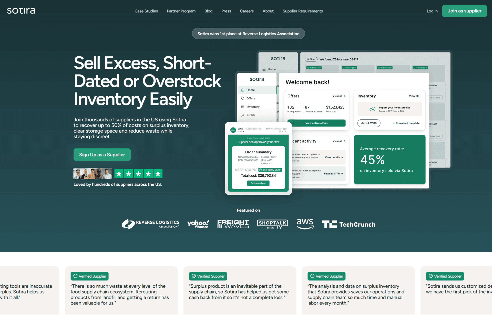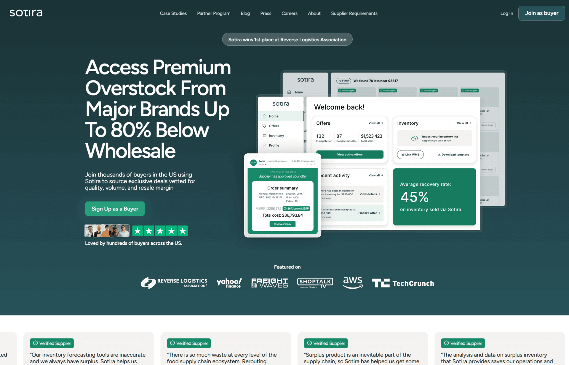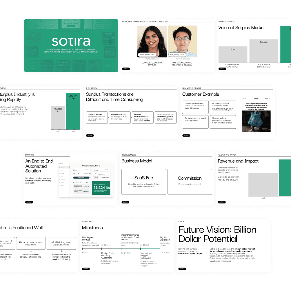 Sotira is transforming how brands handle surplus inventory. Their AI-powered platform automates connecting sellers with buyers, managing compliance and handling logistics, which used to be a manual, gatekept and relationship-driven process, in one straightforward system.